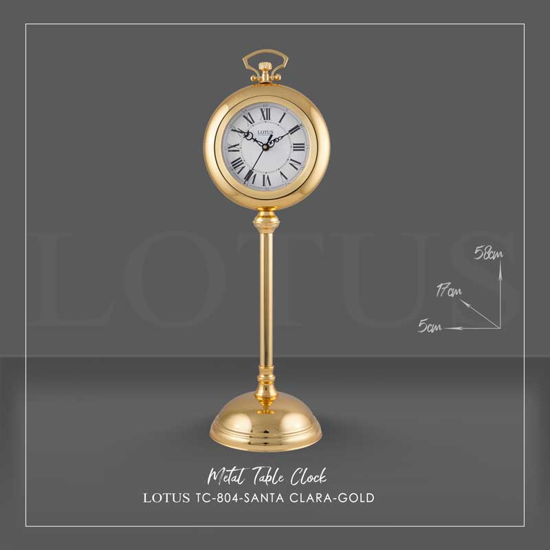 ساعت فلزی سانتاکلارا طلایی به خاطر ارتفاع بلند و طراحی خاصش کاملا”نسبت به مدلهای دیگر متمایز و متفاوت است . شما میتوانید این ساعت رومیزی را روی میز کنسول ، میز کنار تخت ، میز کنار مبلی و … دکور کنید . فریم ساعت تمام فلزی هست و با تبحر و ظرافت پرداخت و آبکاری شده است .ساعت سانتا کلارا برای هدیه نیز یک گزینه شیک و جذاب محسوب می شود.